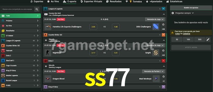 A aposta ss77 oferece aos jogadores a experiência mais conveniente de apostas em eSports!